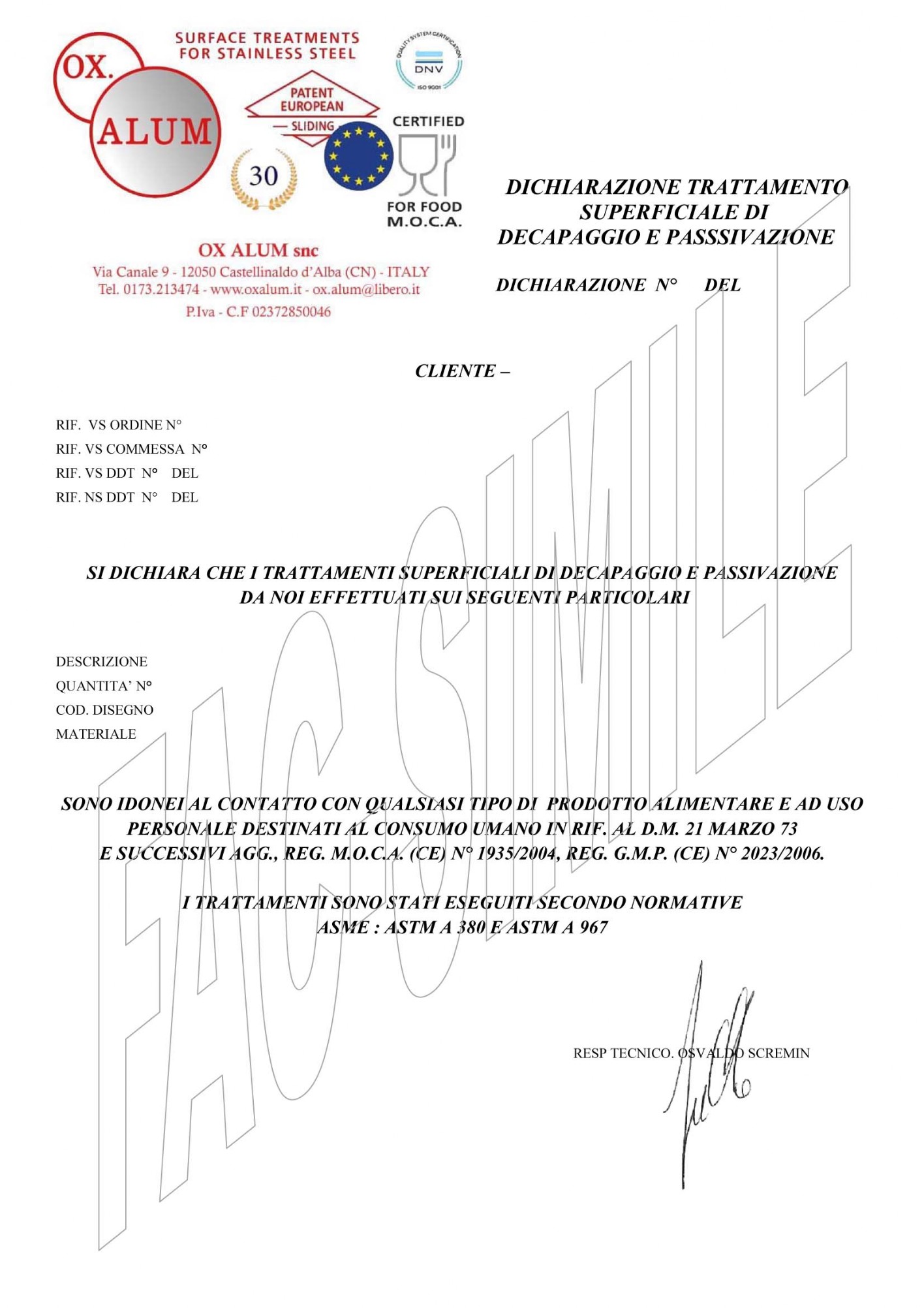 Conf. Decappaggio e Passivazione - Oxalum snc