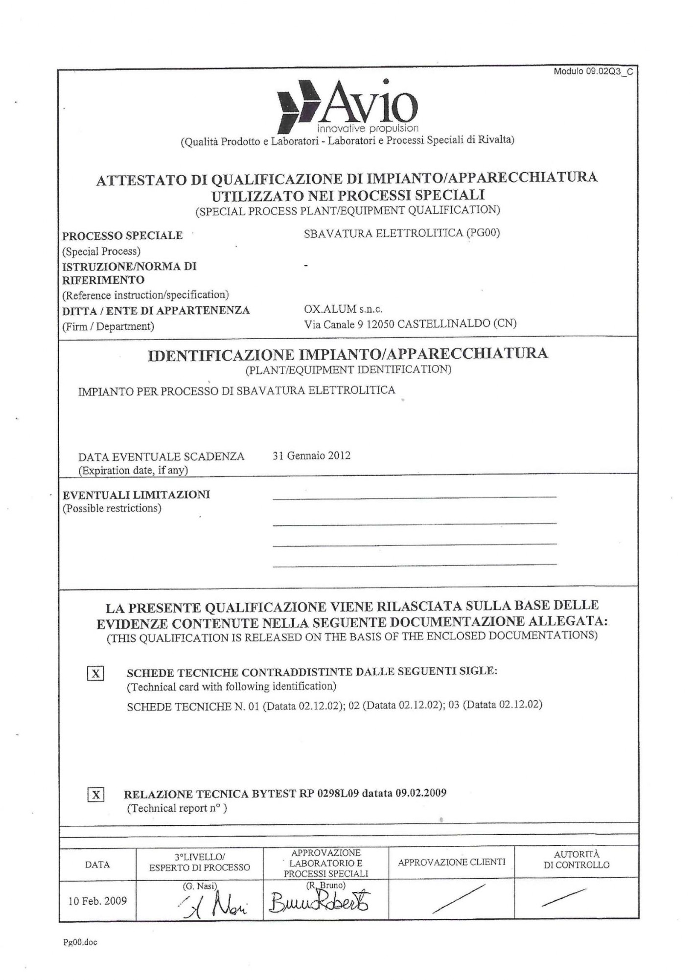 Conformità Avio - Oxalum snc
